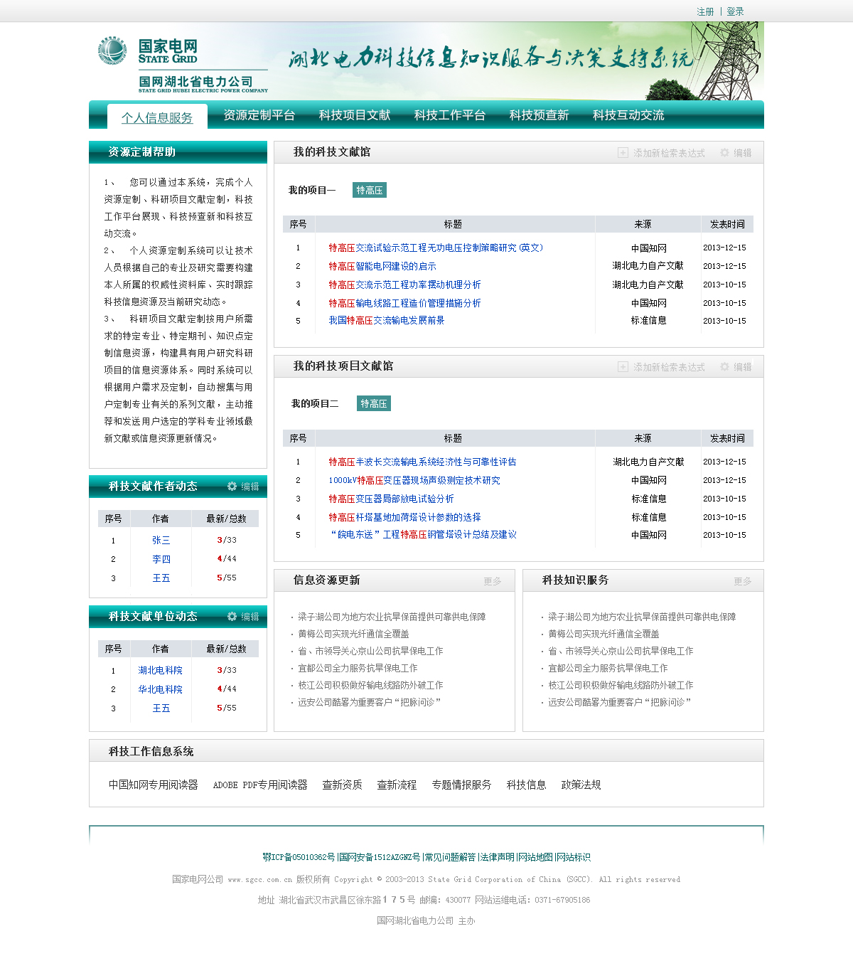 湖(hú)北電(diàn)力科技(jì)信息資源平台高(gāo)級應用系統